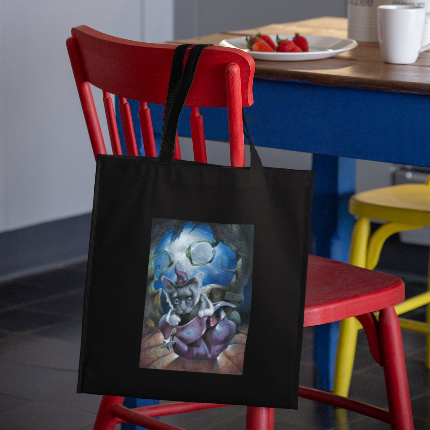 Forget the usual boring shopping bags, stand out from the crowd with this beautiful 100% cotton tote bag featuring fantasy black cat art by Martin Hanford. Perennially useful for shopping, collecting veg from the allotment, carrying your lunch: the possibilities are endless :) Treat yourself or give as a beautiful and practical gift.