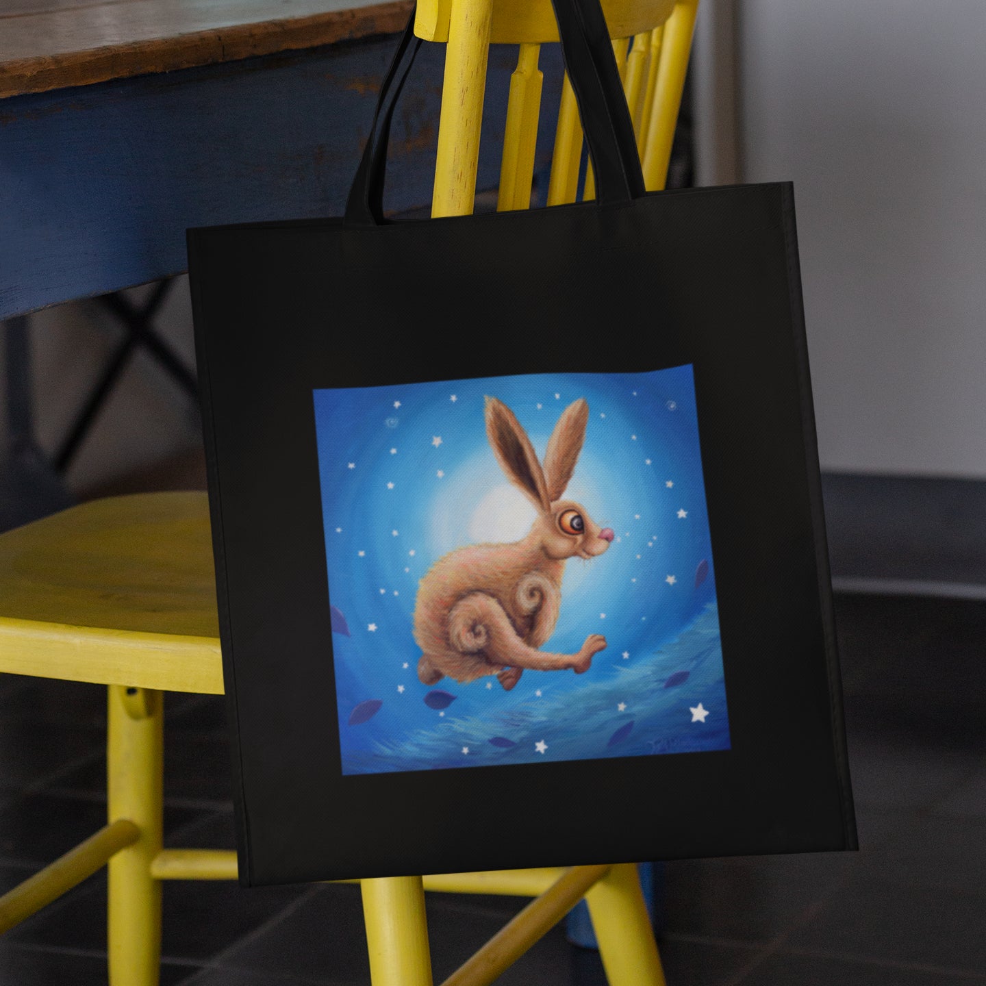 Forget the usual boring shopping bags, stand out from the crowd with this beautiful 100% cotton tote bag featuring cartoon hare art by Rachel Blackwell. Perennially useful for shopping, collecting veg from the allotment, carrying your lunch: the possibilities are endless :) Treat yourself or give as a beautiful and practical gift.
