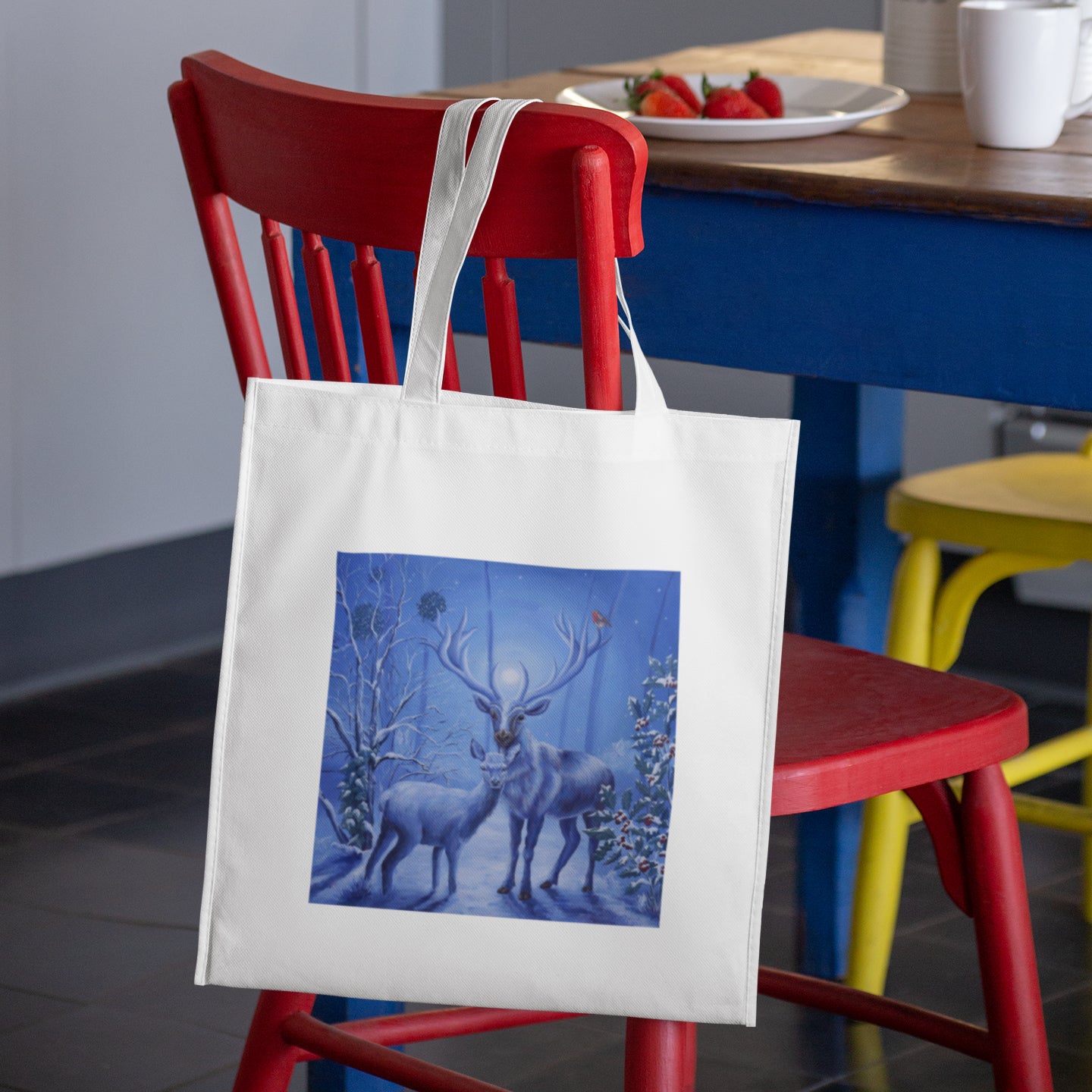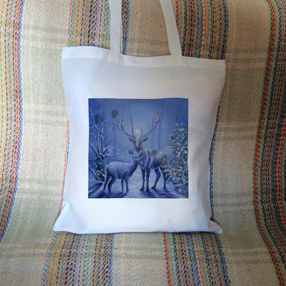 Forget the usual boring shopping bags, stand out from the crowd with this beautiful 100% cotton tote bag featuring winter / Christmas stag art by Rachel Blackwell. Perennially useful for shopping, collecting veg from the allotment, carrying your lunch: the possibilities are endless :) Treat yourself or give as a beautiful and practical gift.