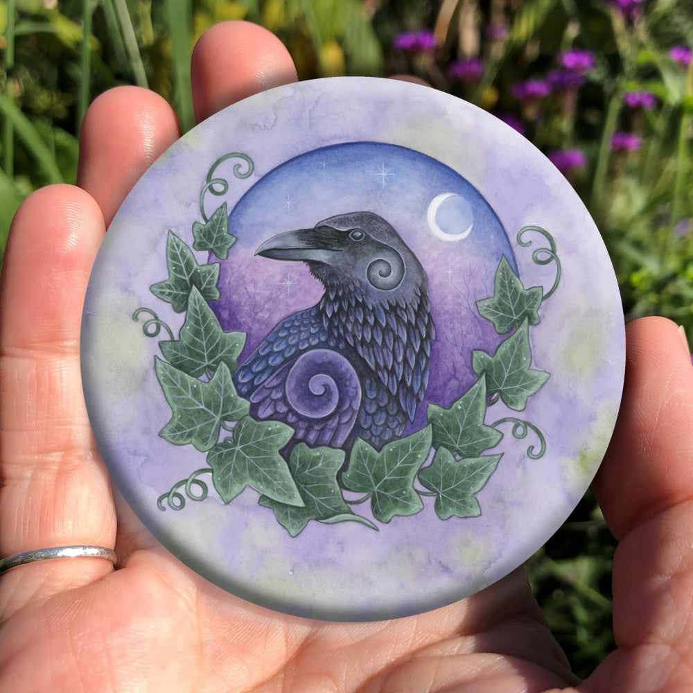 Add some colour and personality to your fridge with this beautiful raven design by Esther Remmington. Fridge magnets are a great way to make fridges and other metal surfaces less boring. A popular small gift for pagans and collectors of raven art. They post easily too!