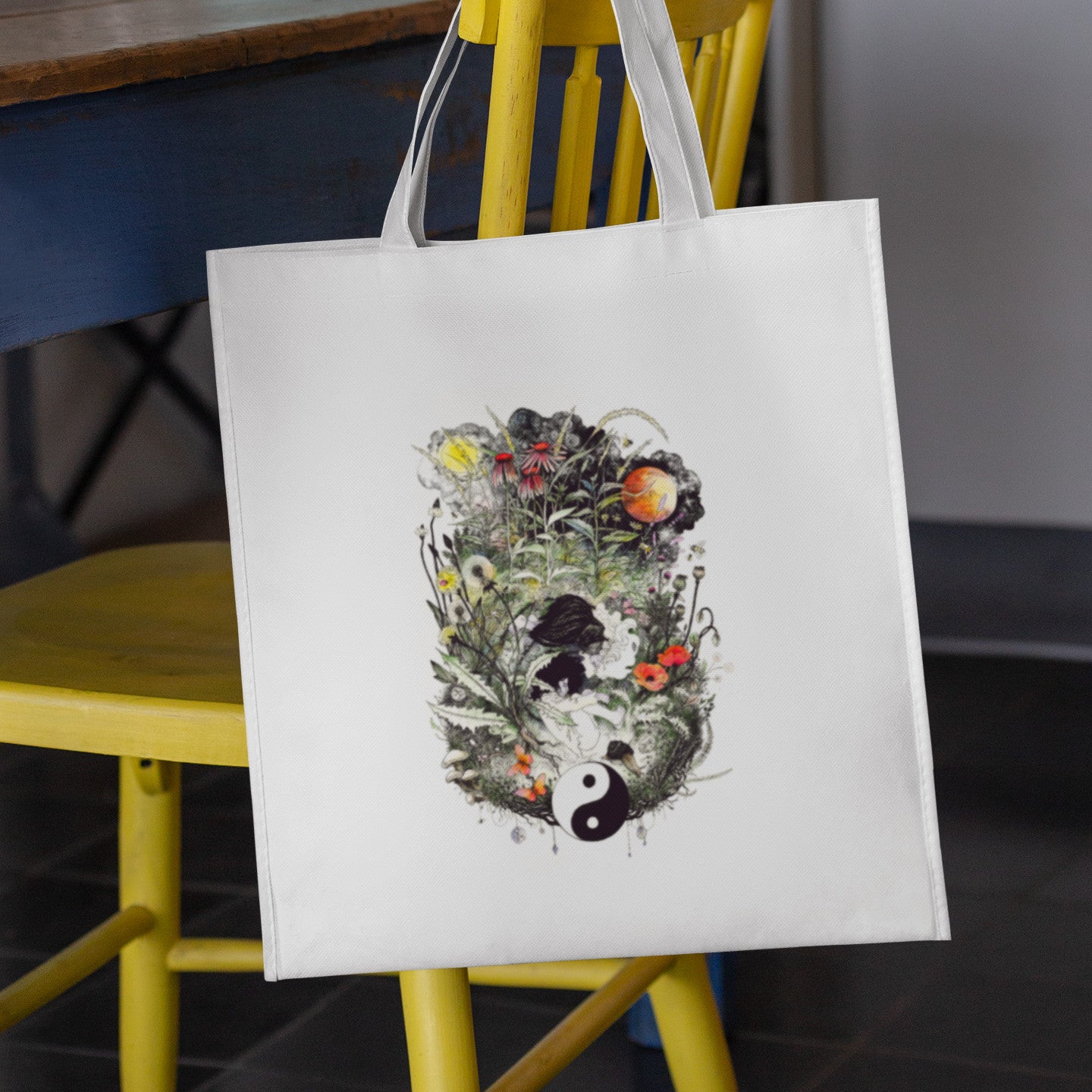 Forget the usual boring shopping bags, stand out from the crowd with this beautiful 100% recycled rPET tote bag with extra-long (cross-body) handle featuring pagan art by Naomi Cornock. Perennially useful for shopping, collecting veg from the allotment, carrying your lunch: the possibilities are endless :) Treat yourself or give as a beautiful and practical gift.