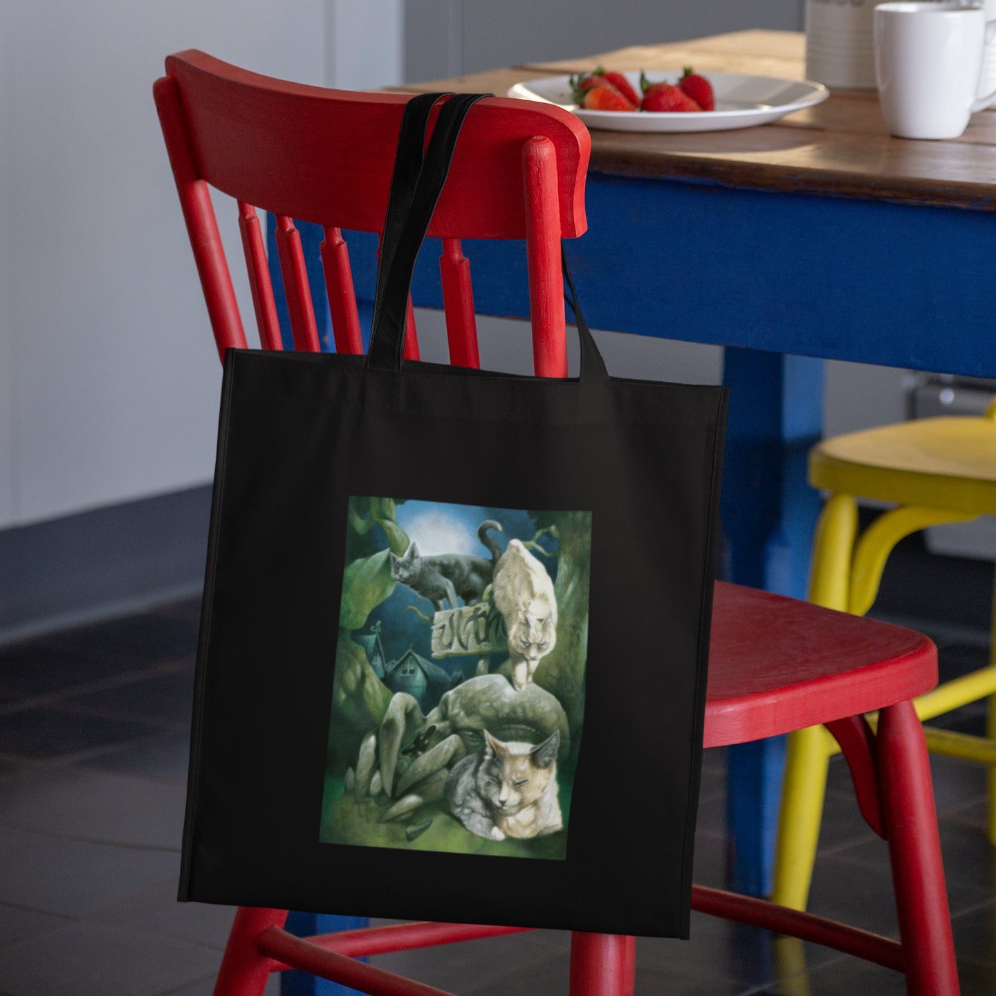 Forget the usual boring shopping bags, stand out from the crowd with this beautiful 100% cotton tote bag featuring fantasy cat art by Martin Hanford. Perennially useful for shopping, collecting veg from the allotment, carrying your lunch: the possibilities are endless :) Treat yourself or give as a beautiful and practical gift.