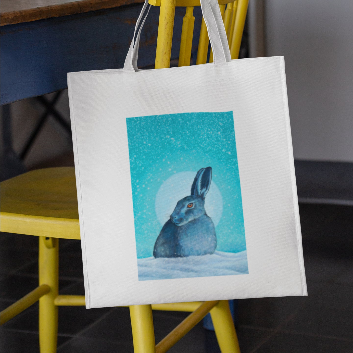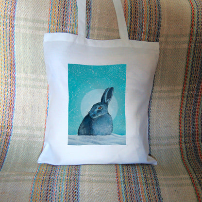 Forget the usual boring shopping bags, stand out from the crowd with this beautiful 100% cotton tote bag featuring Yule / Winter Solstice / Christmas hare art by Chris Down. Perennially useful for shopping, collecting veg from the allotment, carrying your lunch: the possibilities are endless :) Treat yourself or give as a beautiful and practical gift.