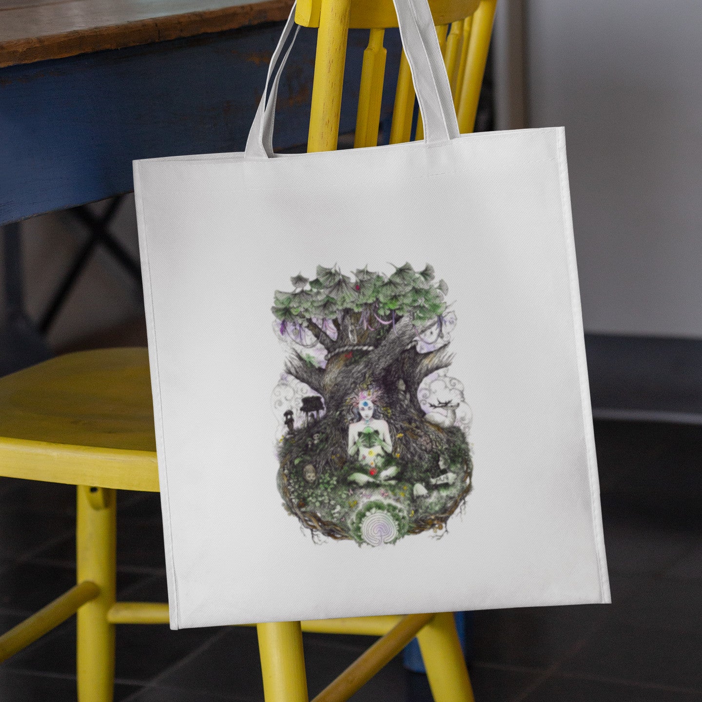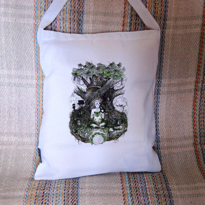 Forget the usual boring shopping bags, stand out from the crowd with this beautiful 100% recycled rPET tote bag with extra-long (cross-body) handle featuring pagan art by Naomi Cornock. Perennially useful for shopping, collecting veg from the allotment, carrying your lunch: the possibilities are endless :) Treat yourself or give as a beautiful and practical gift.
