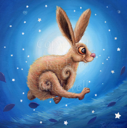 Add a little beauty and colour to your home with this cartoon hare art print by Rachel Blackwell. Perfect for pagans and collectors of fantasy art, this print makes a unique and thoughtful gift that will raise a smile every day.